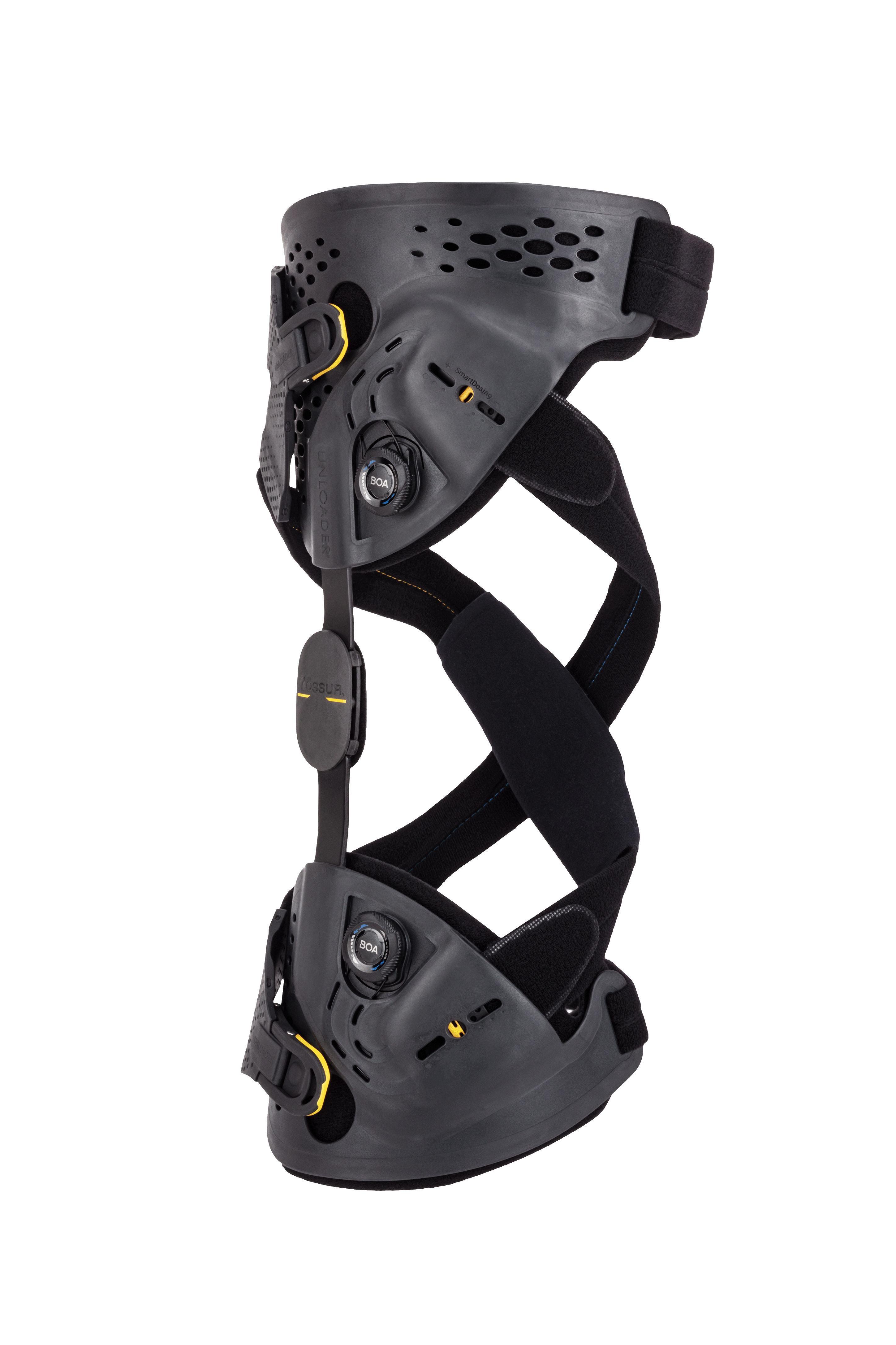 Die spezielle Unloader One® X Knieorthese von Össur arbeitet anstelle von Druck, mit einem individuell einstellbaren Zug – was für eine sanfte Entlastung sorgt. Das Kniegelenk wird bei Belastung entlastet, insbesondere in der Standbeinphase, wodurch ein schmerzfreier Gang möglich wird.