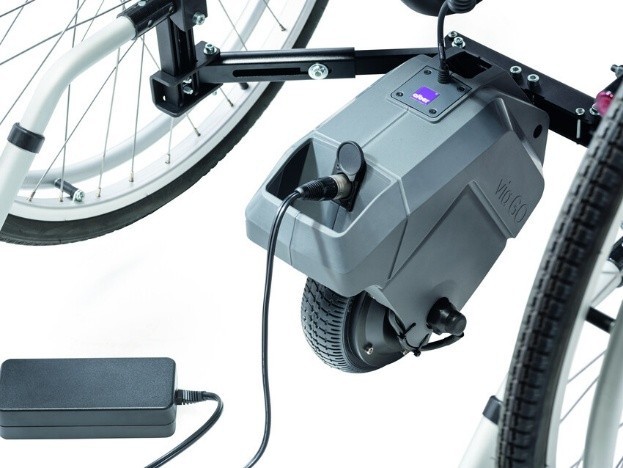 via Go ist die platzsparende Schiebehilfe, die Sie einfach zusammen mit dem Rollstuhl falten und verstauen können.